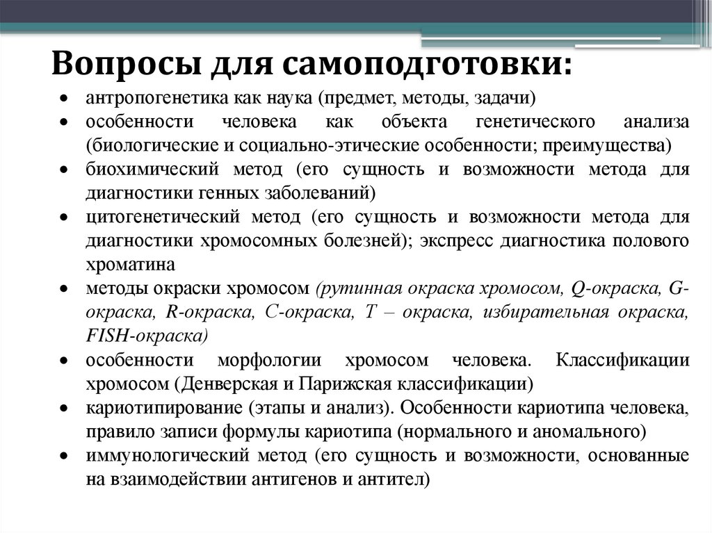 Вопросы для самоподготовки:антропогенетика как наука (предмет, методы, задачи)