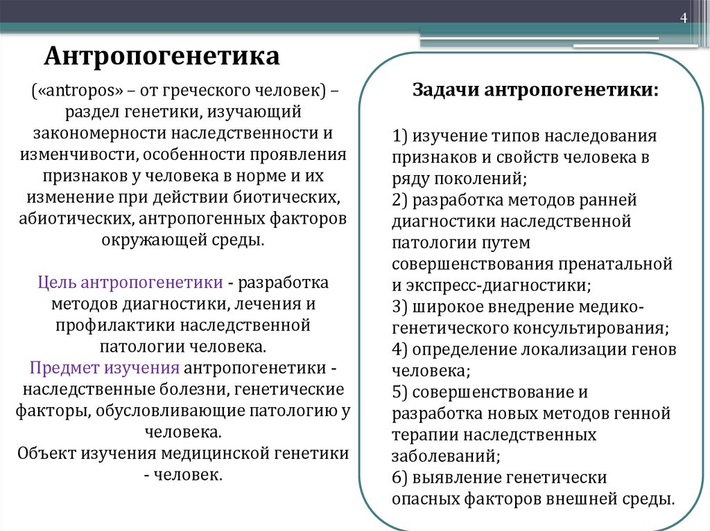 Предмет изучения антропогенетики наследственные болезни, генетические