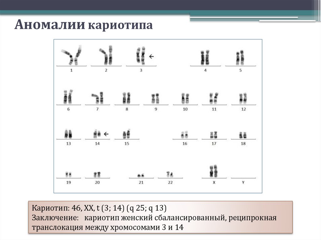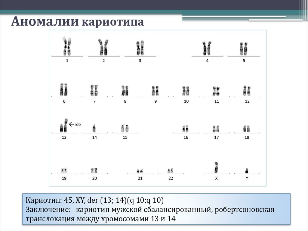 Исследование кариотипа ребёнка не проводилось. Кариотип родителей в