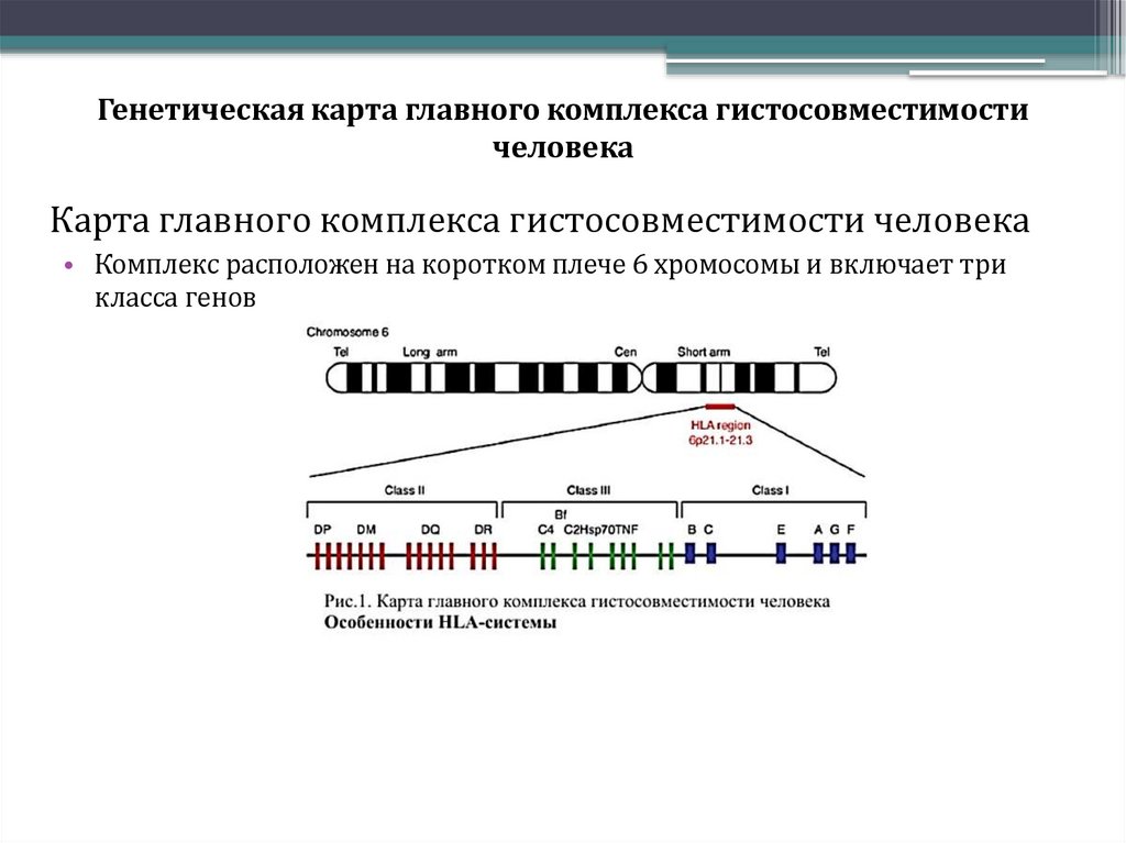 Генетическая карта главного комплекса гистосовместимостичеловека