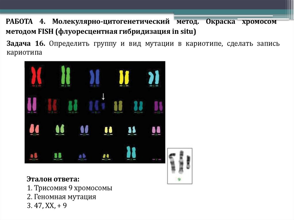 Задача 16. Определить группу и вид мутации в кариотипе, сделать запись