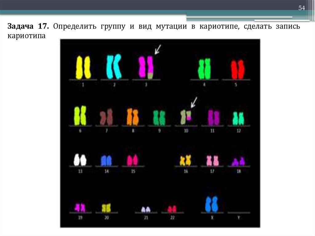 54Задача 17. Определить группу и вид мутации в кариотипе, сделать запись