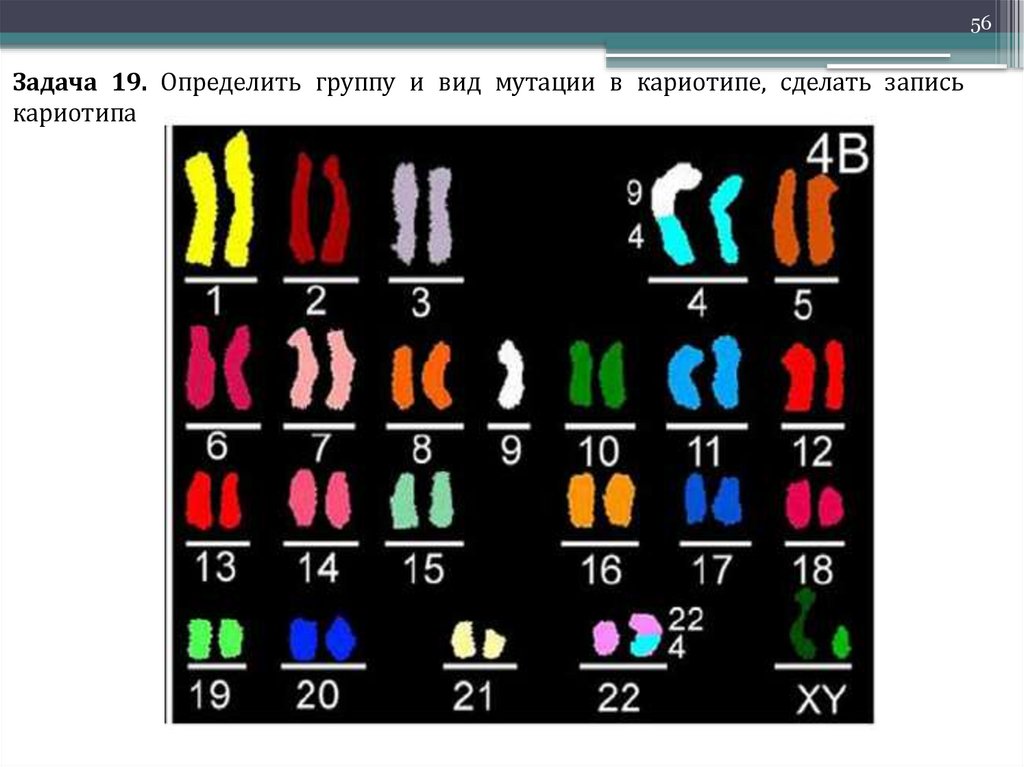 56Задача 19. Определить группу и вид мутации в кариотипе, сделать запись