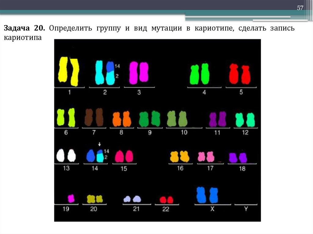 57Задача 20. Определить группу и вид мутации в кариотипе, сделать запись