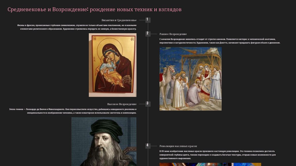 Средневековье и Возрождение: рождение новых техник и взглядовВизантия и Средневековье