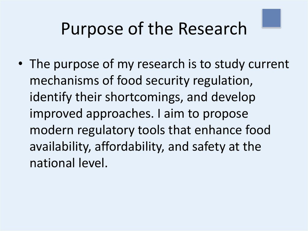 Purpose of the Research• The purpose of my research is to study current