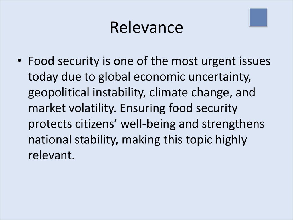 Relevance• Food security is one of the most urgent issues