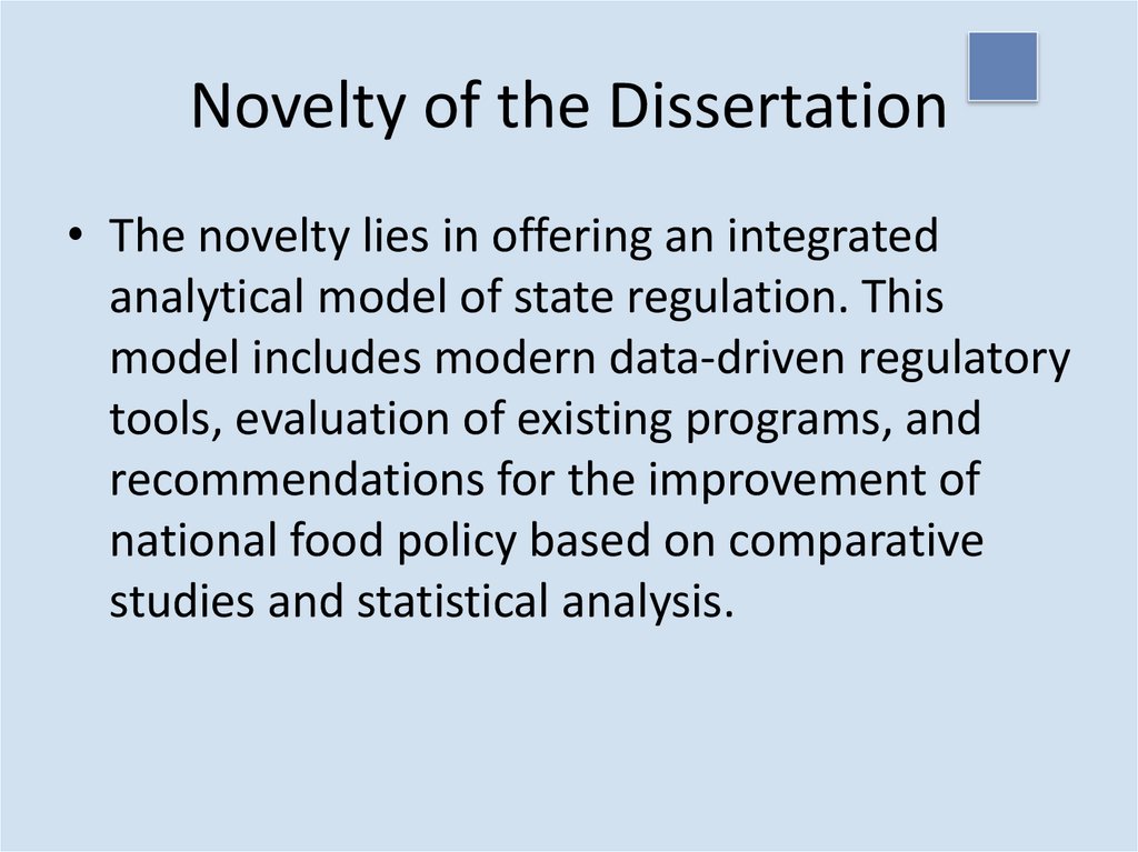 Novelty of the Dissertation• The novelty lies in offering an integrated