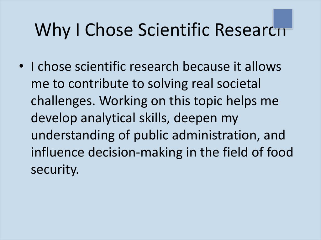 Why I Chose Scientific Research• I chose scientific research because it allows