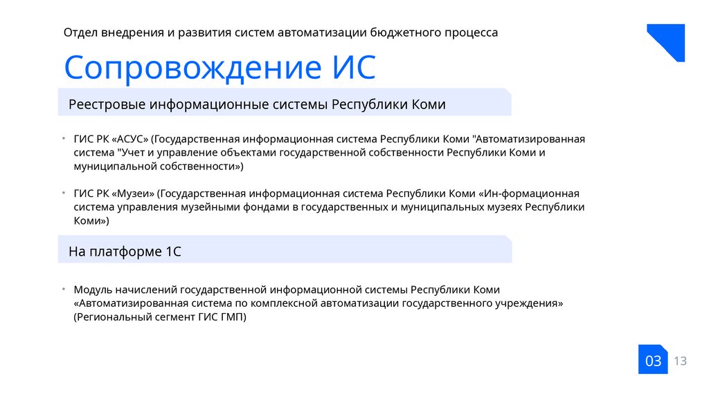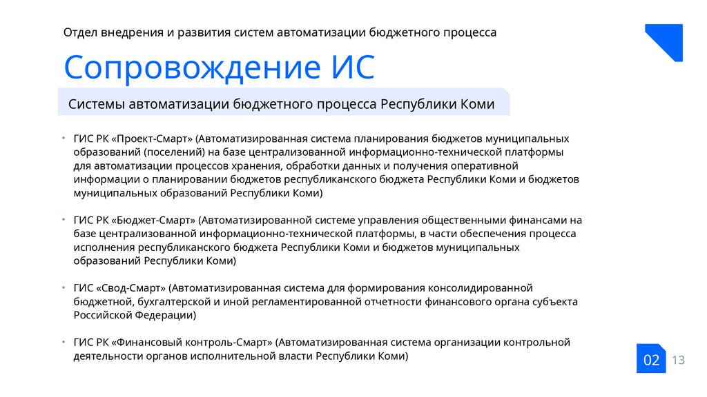 Отдел внедрения и развития систем автоматизации бюджетного процессаСопровождение ИС