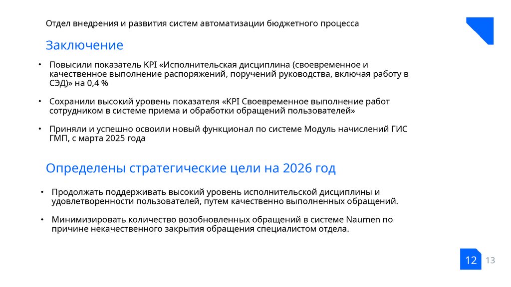 Отдел внедрения и развития систем автоматизации бюджетного процессаЗаключение