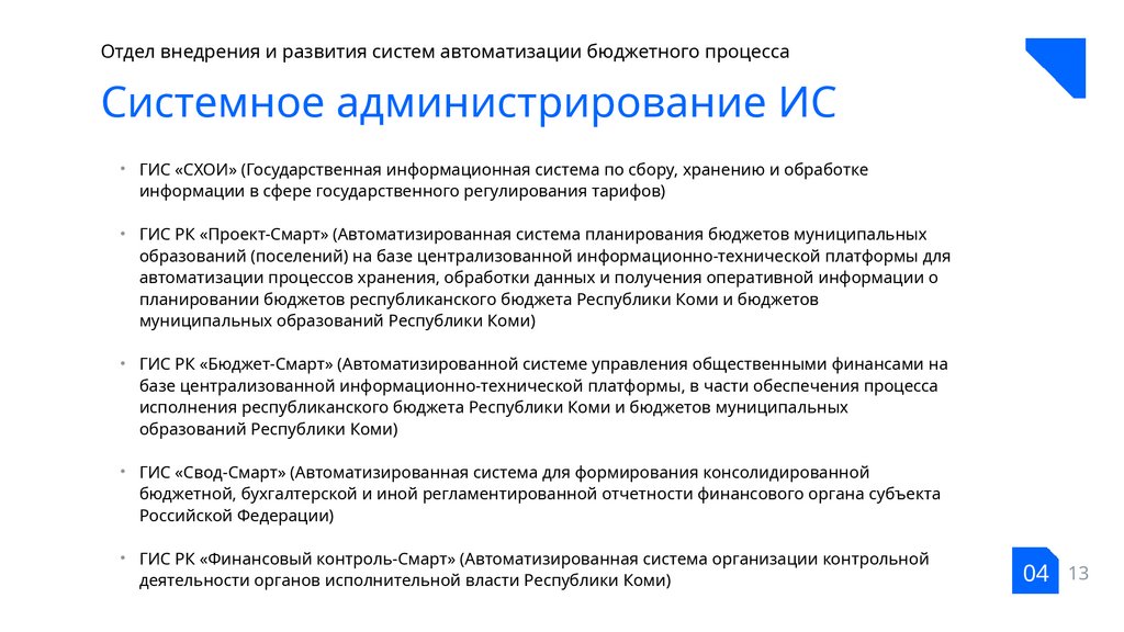 Отдел внедрения и развития систем автоматизации бюджетного процессаСистемное администрирование ИС
