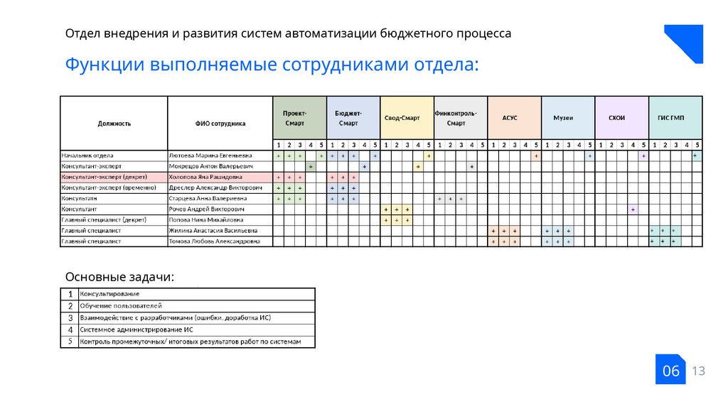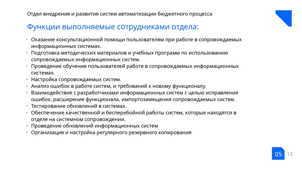 Отдел внедрения и развития систем автоматизации бюджетного процессаФункции выполняемые сотрудниками отдела: