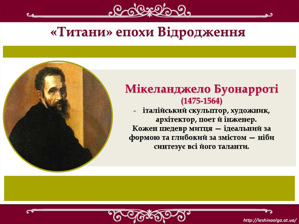 «Титани» епохи ВідродженняМікеланджело Буонарроті