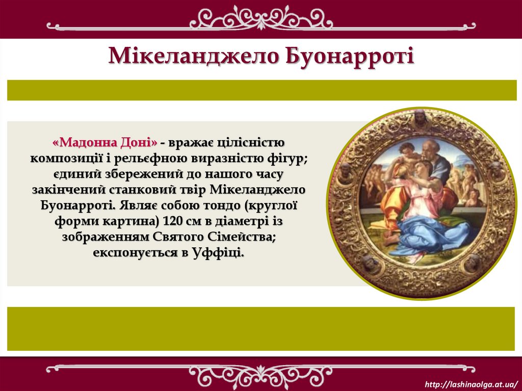 Мікеланджело Буонарроті«Мадонна Доні» - вражає цілісністю