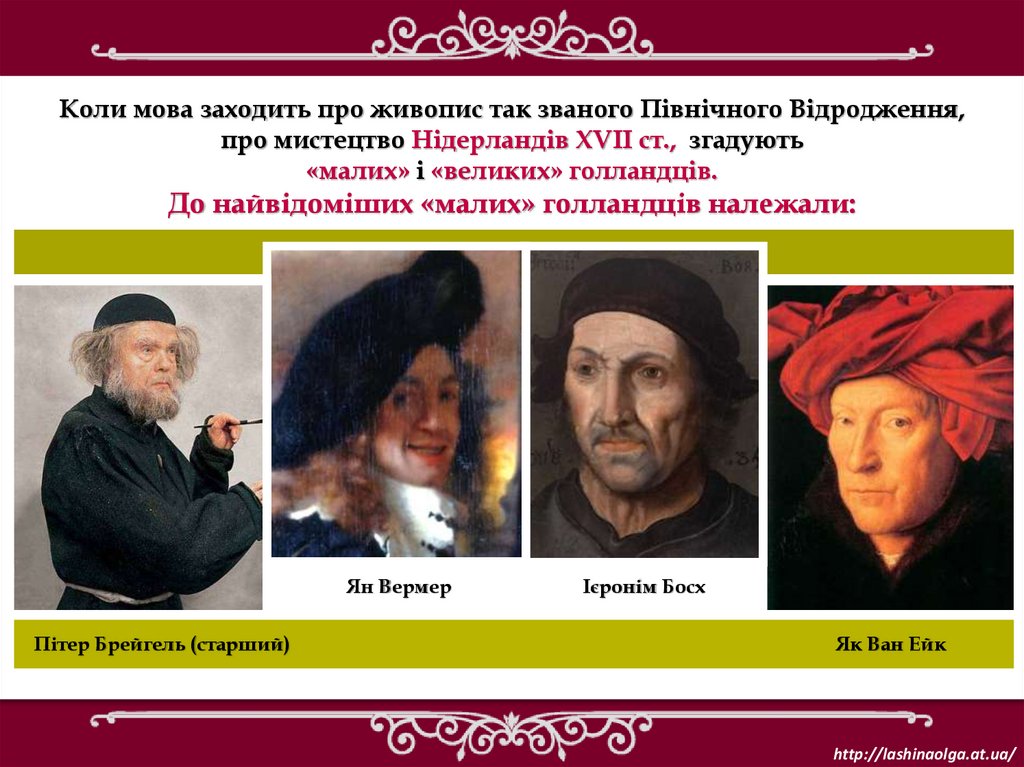 Коли мова заходить про живопис так званого Північного Відродження,про мистецтво Нідерландів XVII ст., згадують