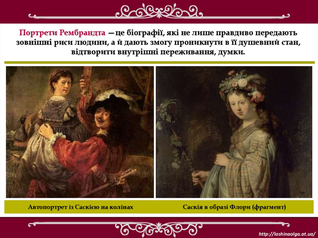 Портрети Рембрандта —це біографії, які не лише правдиво передаютьзовнішні риси людини, а й дають змогу проникнути в її душевний стан,