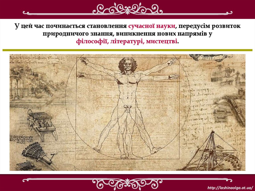 У цей час починається становлення сучасної науки, передусім розвитокприродничого знання, виникнення нових напрямів у