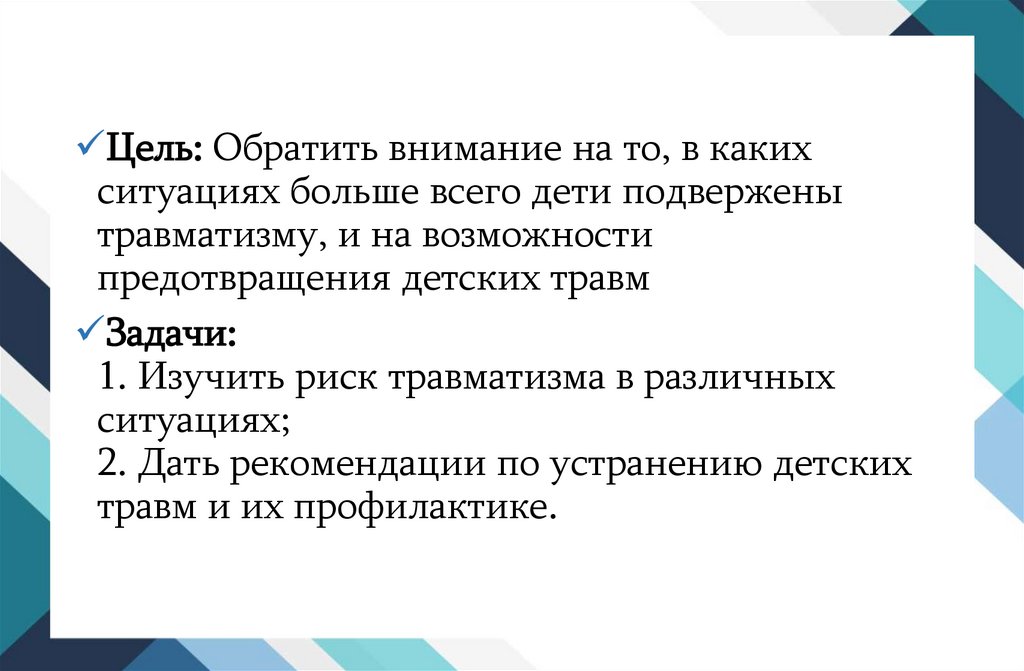 Цель: Обратить внимание на то, в какихситуациях больше всего дети подвержены
