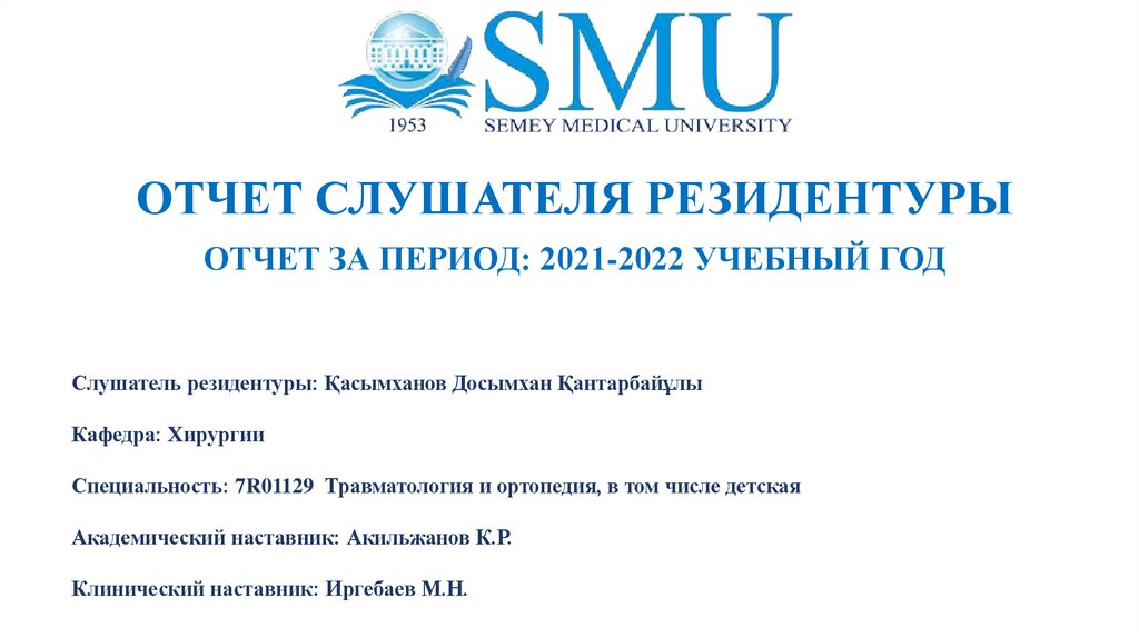 ОТЧЕТ СЛУШАТЕЛЯ РЕЗИДЕНТУРЫОТЧЕТ ЗА ПЕРИОД: 2021-2022 УЧЕБНЫЙ ГОД