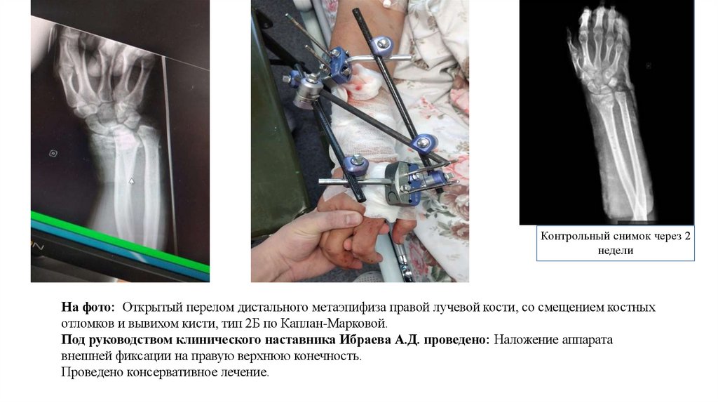 отломков и вывихом кисти, тип 2Б по Каплан-Марковой.