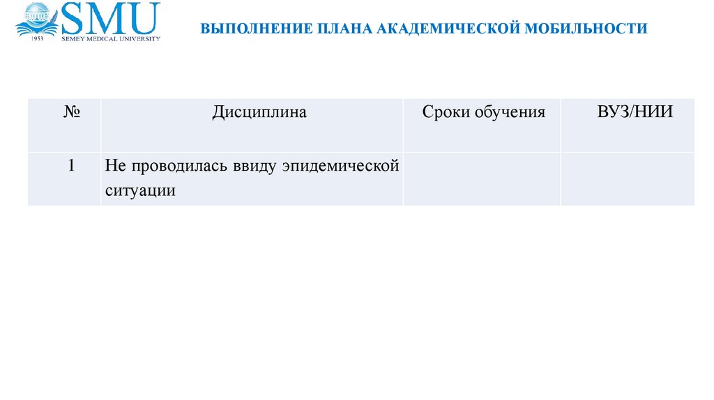 ВЫПОЛНЕНИЕ ПЛАНА АКАДЕМИЧЕСКОЙ МОБИЛЬНОСТИ№