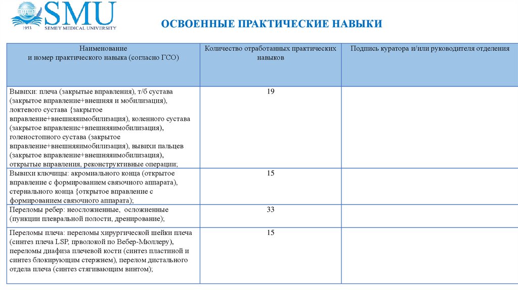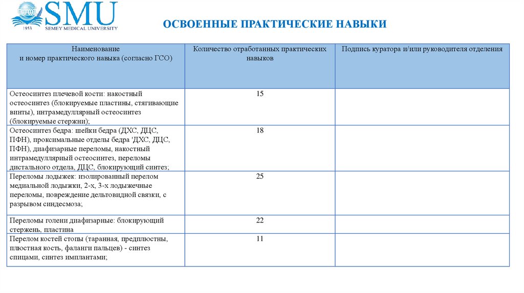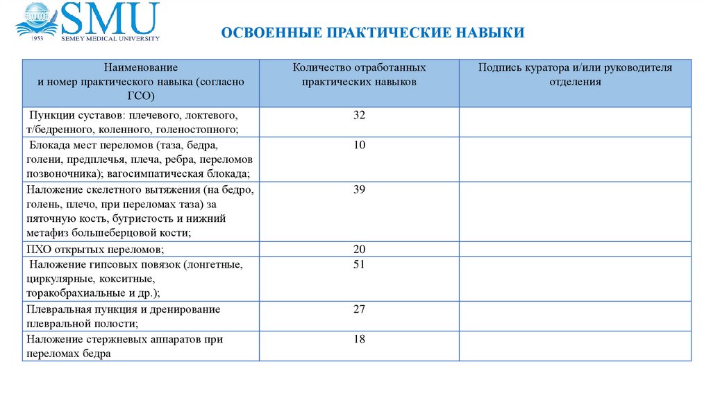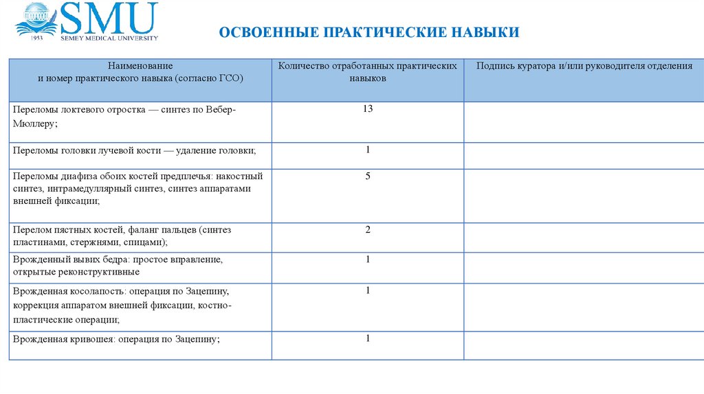ОСВОЕННЫЕ ПРАКТИЧЕСКИЕ НАВЫКИНаименование