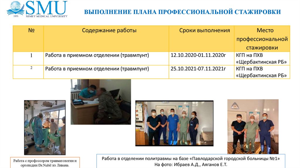 Работа в отделении политравмы на базе «Павлодарской городской больницы №1»