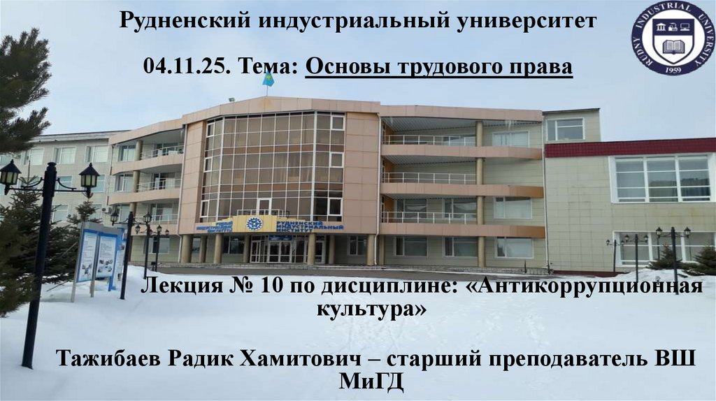 04.11.25. Тема: Основы трудового праваЛекция № 10 по дисциплине: «Антикоррупционная
