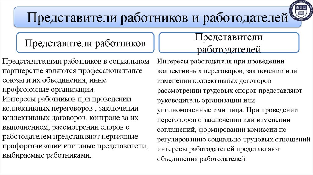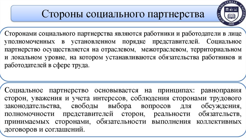 Стороны социального партнерстваСторонами социального партнерства являются работники и работодатели в лице