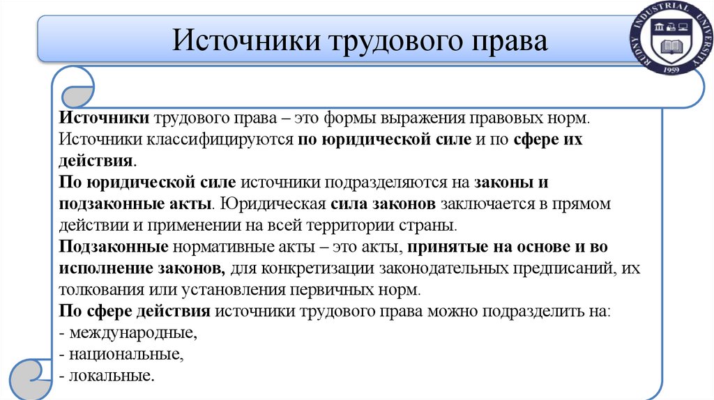 Источники трудового праваИсточники трудового права – это формы выражения правовых норм.