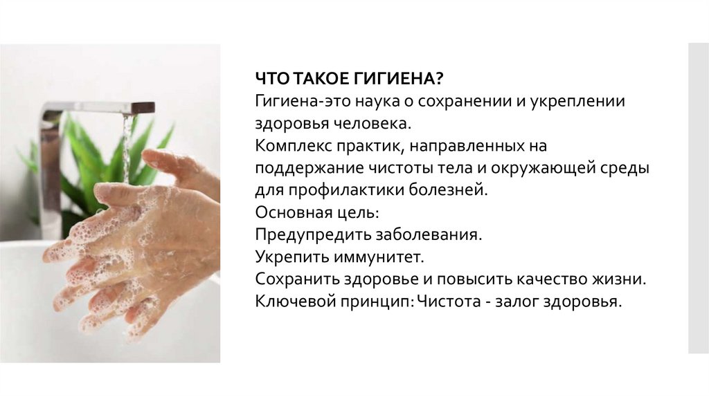 ЧТО ТАКОЕ ГИГИЕНА?Гигиена-это наука о сохранении и укреплении