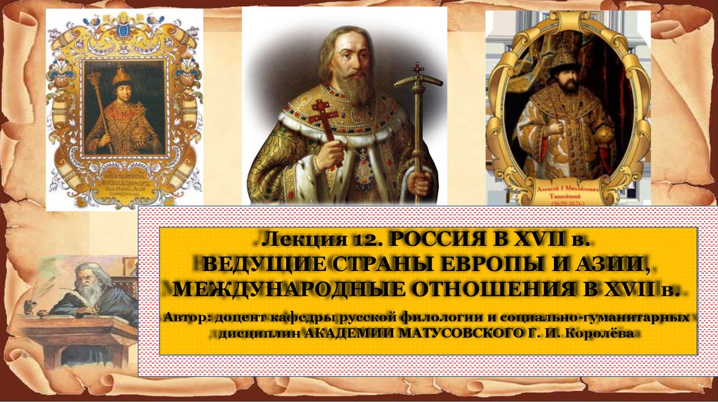 Лекция 12. РОССИЯ В XVII в.ВЕДУЩИЕ СТРАНЫ ЕВРОПЫ И АЗИИ,