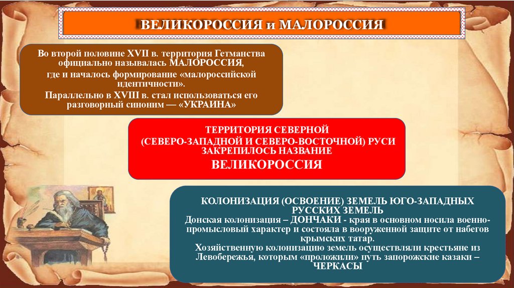 ВЕЛИКОРОССИЯ и МАЛОРОССИЯВо второй половине XVII в. территория Гетманства