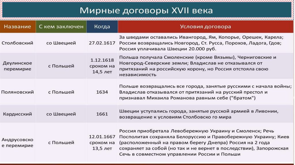 ВНЕШНЯЯ ПОЛИТИКА РОССИИ В XVII в.29.