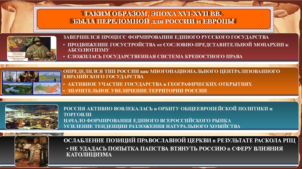 ТАКИМ ОБРАЗОМ, ЭПОХА XVI-XVII ВВ.БЫЛА ПЕРЕЛОМНОЙ для РОССИИ и ЕВРОПЫ