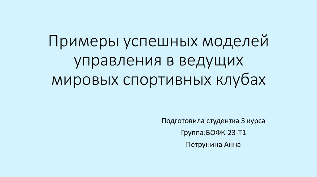 1. Примеры успешных моделей управления в ведущих мировых спортивных клубах