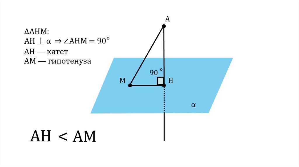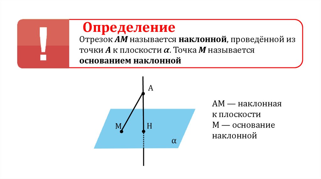 ОпределениеОтрезок АМ называется наклонной, проведённой из