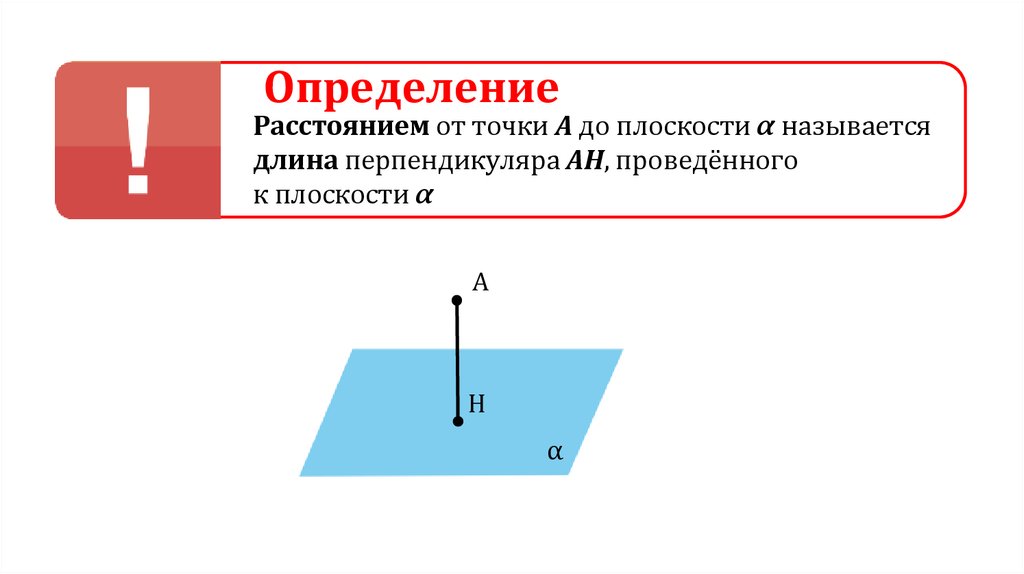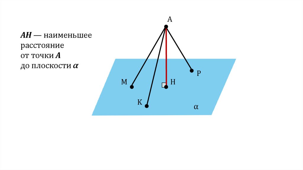 ОпределениеРасстоянием от точки А до плоскости α называется