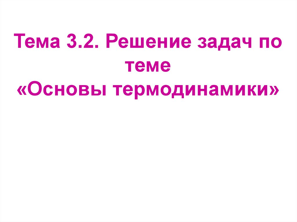 1. Тема 3.2. Решение задач по теме «Основы термодинамики»