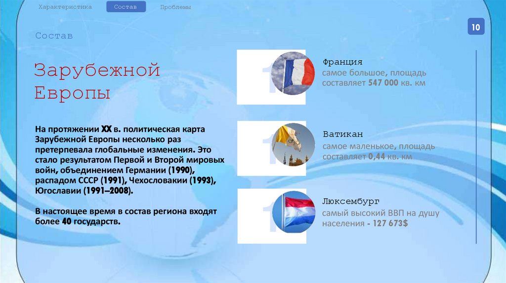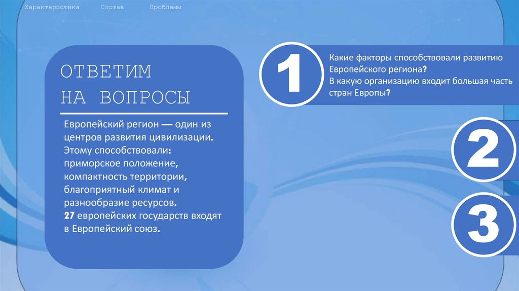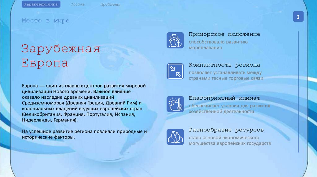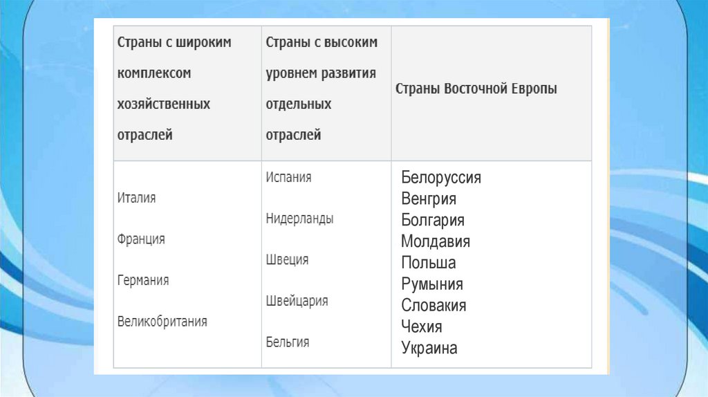 • Сформировать представление об особенностях ЭГП странЕвропы, определить его значение для хозяйства региона