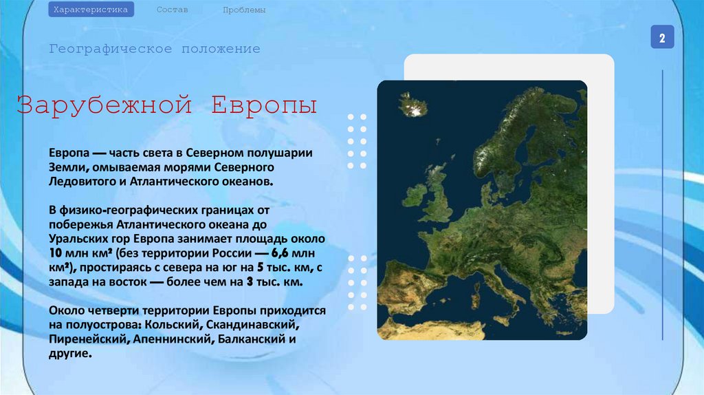 •Территория Зарубежной Европыпростирается с севера на юг на 5