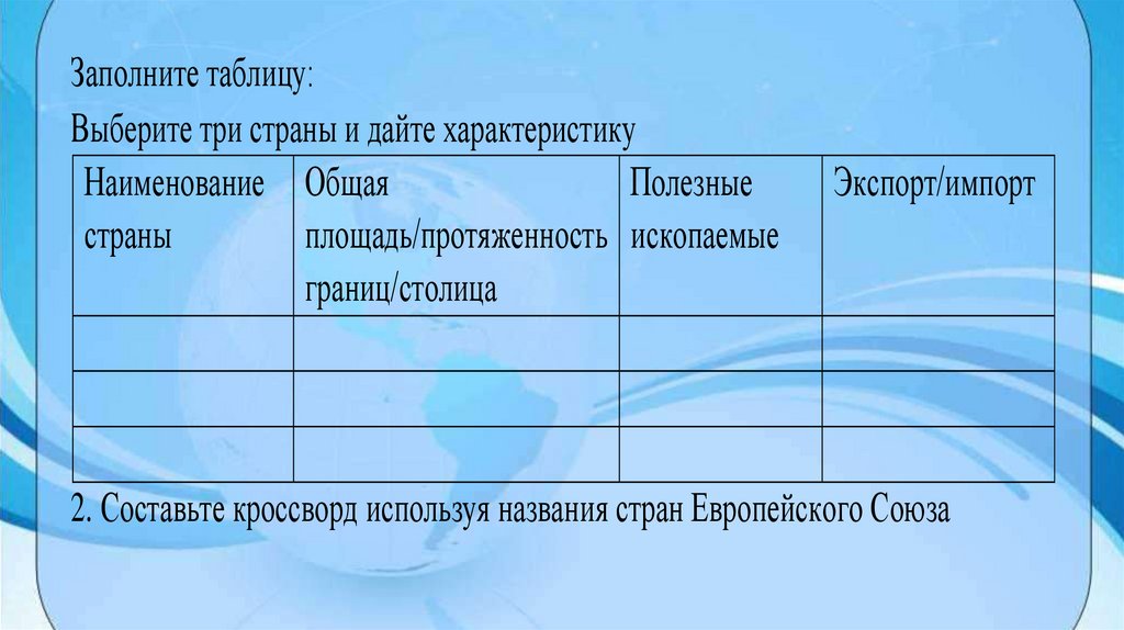 2. Составьте кроссворд используя названия стран Европейского Союза