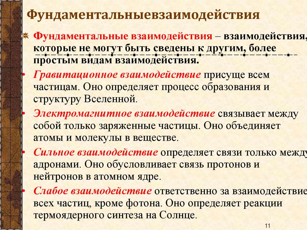 ФундаментальныевзаимодействияФундаментальные взаимодействия – взаимодействия,