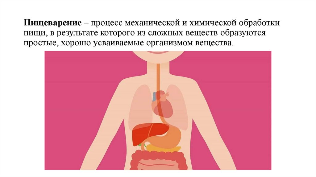 Пищеварение – процесс механической и химической обработкипищи, в результате которого из сложных веществ образуются