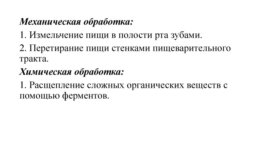 Механическая обработка:1. Измельчение пищи в полости рта зубами.