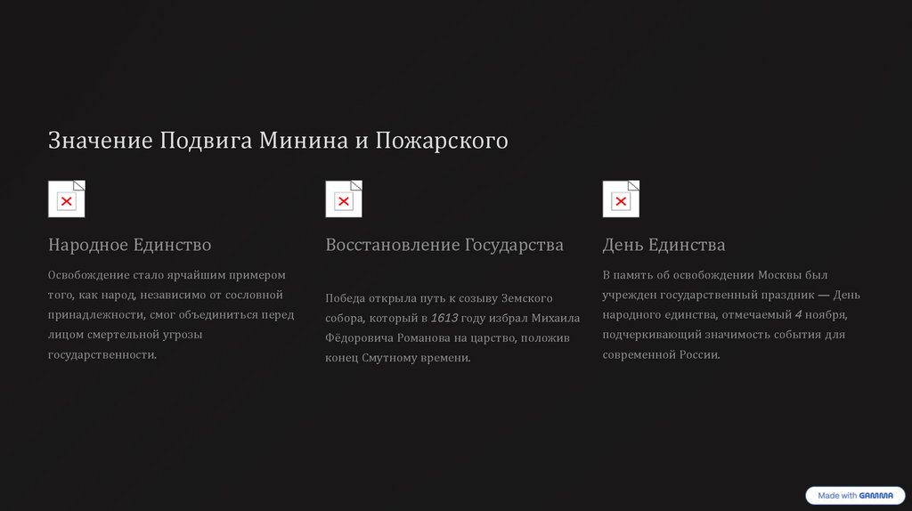 Значение Подвига Минина и ПожарскогоНародное Единство