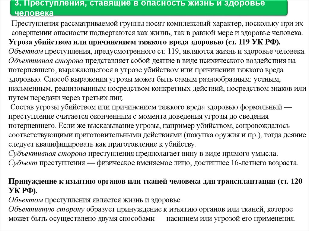 3. Преступления, ставящие в опасность жизнь и здоровьечеловека