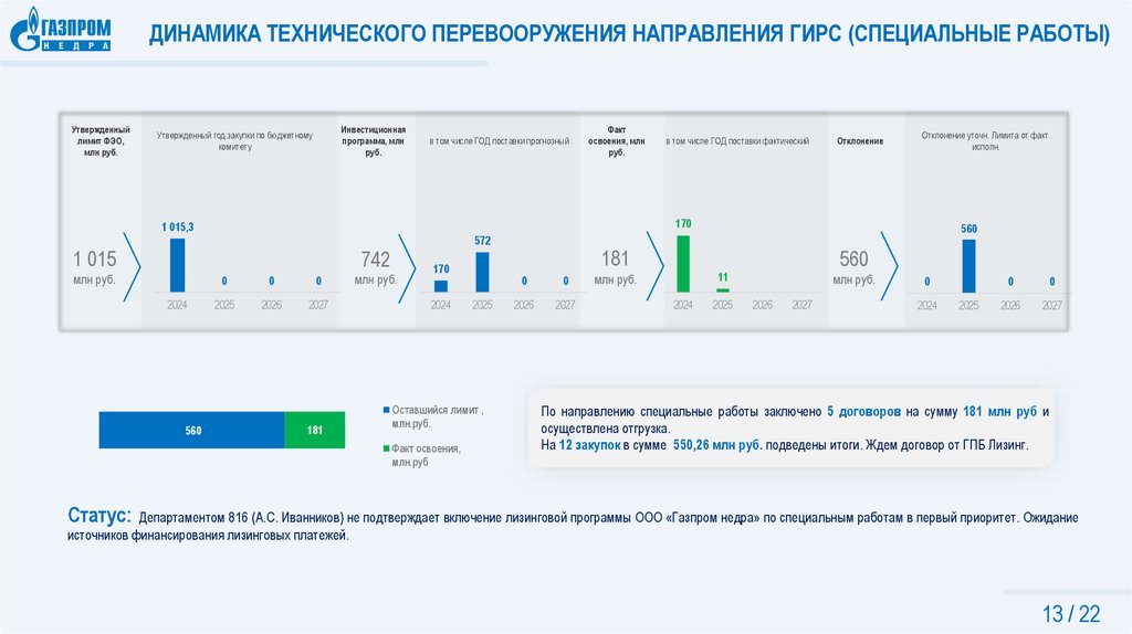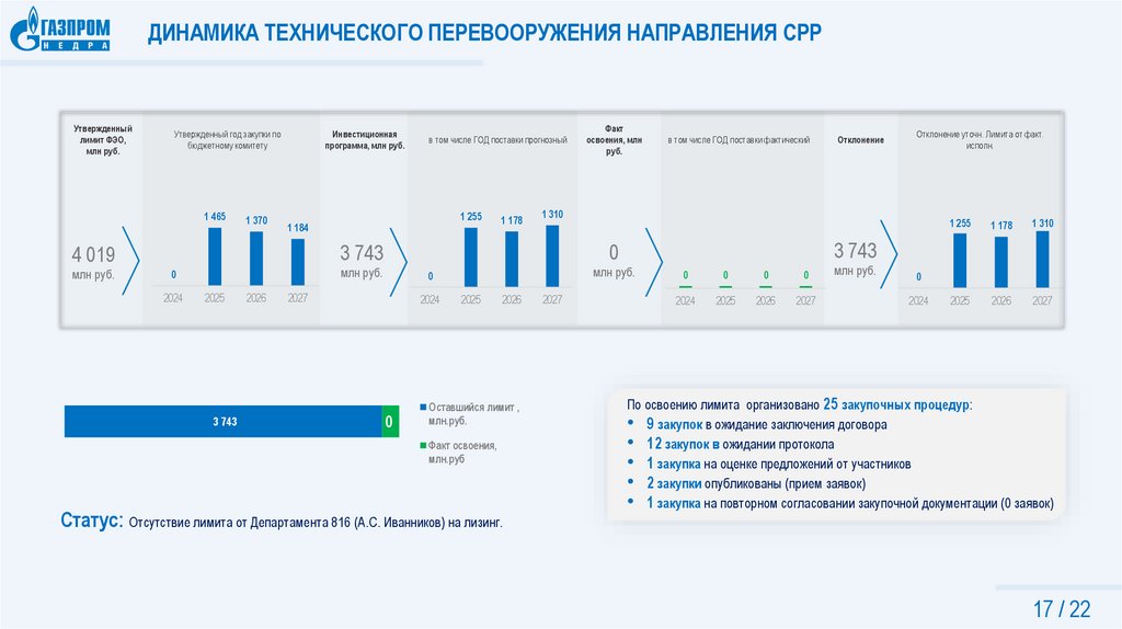Лимит финансирования по ГЗ ПАО «Газпром» и ДО ПАО «Газпром»