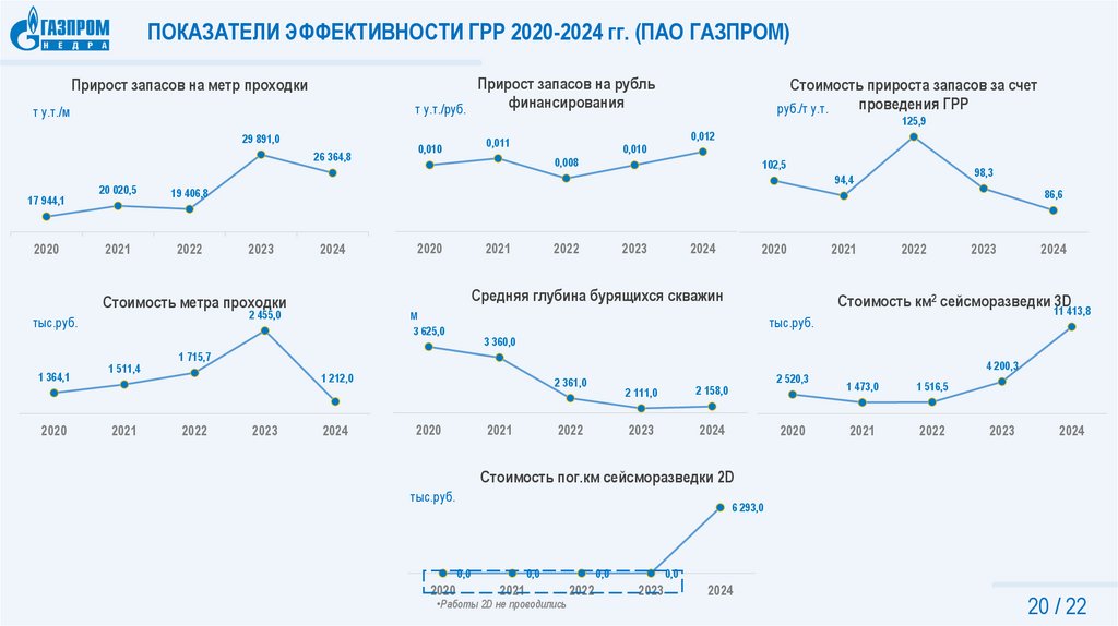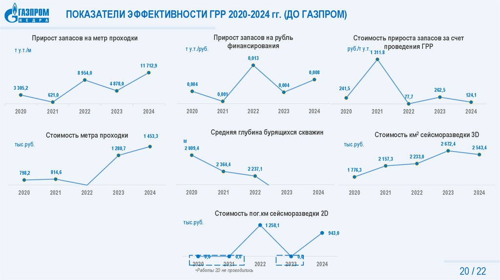 ПОКАЗАТЕЛИ ЭФФЕКТИВНОСТИ ГРР 2020-2024 гг. (ДО ГАЗПРОМ)Прирост запасов на рубль